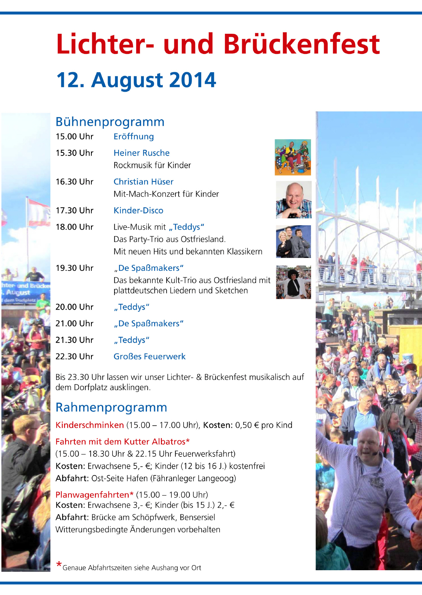Und jetzt stehen die "Teddys" schon wieder in den Startlöchern für den Gallimarkt in Leer, auf dem wir (wie seit über 20 Jahren) Claassens prallgefülltes Festzelt in Party-Stimmung bringen wollen. Vom 08.10. bis 11.10.2014. Hören Sie doch auch mal rein.....