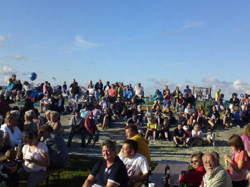 Mit der heutigen Veranstaltung geht die Veranstaltungsreihe "Live am Deich" zu Ende, auf der wir vier mal gastiert haben. Eine kleine Bühne am Strand, ein paar Tische und Stühle, ein Lagerfeuer zum Stockbrotbraten und natürlich ein paar gekühlte Getränke. Fertig. Wenn das Wetter mitspielt, ein Konzept, das aufgeht und von 19.00 Uhr bis 21.00 Uhr viele Zuhörer an den Strand lockt. Für uns eine nette Abwechslung, da das ganze mehr Konzert als Tanzveranstaltung ist. Es war jedes Mal ein angenehmer Abende mit sympathischem Publikum und wir kommen im nächsten Jahr gerne wieder. Zumal die Anreise nur 7 Minuten dauert.....